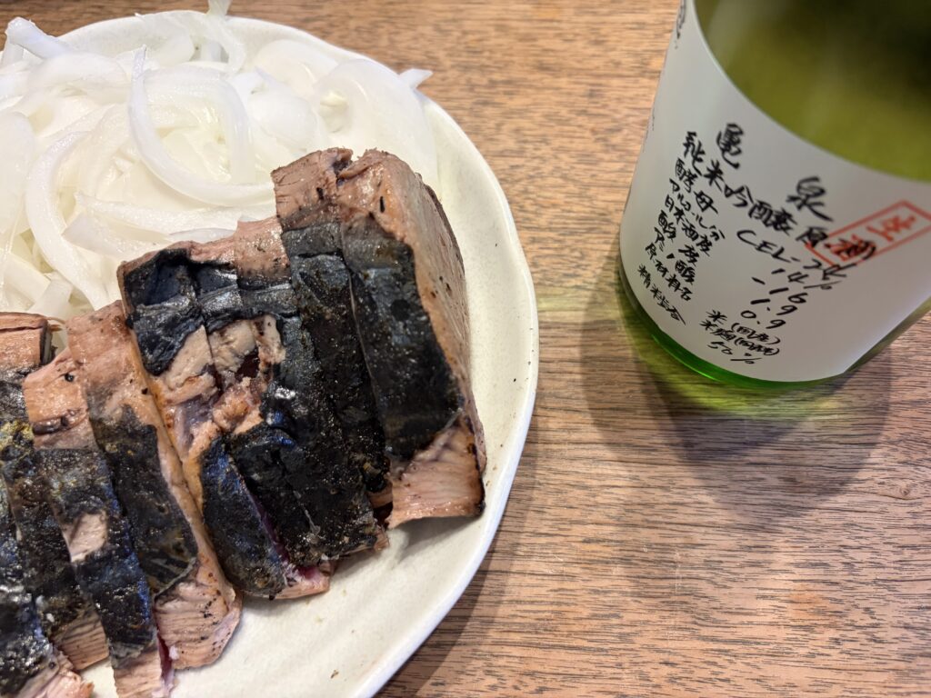 藁焼きの香ばしさとカツオの旨みを、亀泉の豊かな香り・甘味・酸味が包み込むようです。まったくぶつかることなく、むしろお互いを引き立て合っています。さすが高知同士!