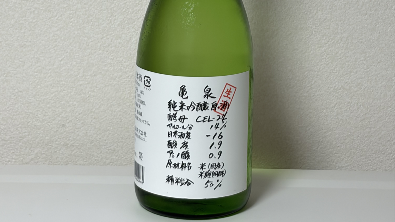 今回は「亀泉 CEL-24」をいただきます。ラベルには純米吟醸と記載されていますが、精米歩合(お米を削る割合)は50%のため、純米大吟醸を名乗れるスペックでもあります。